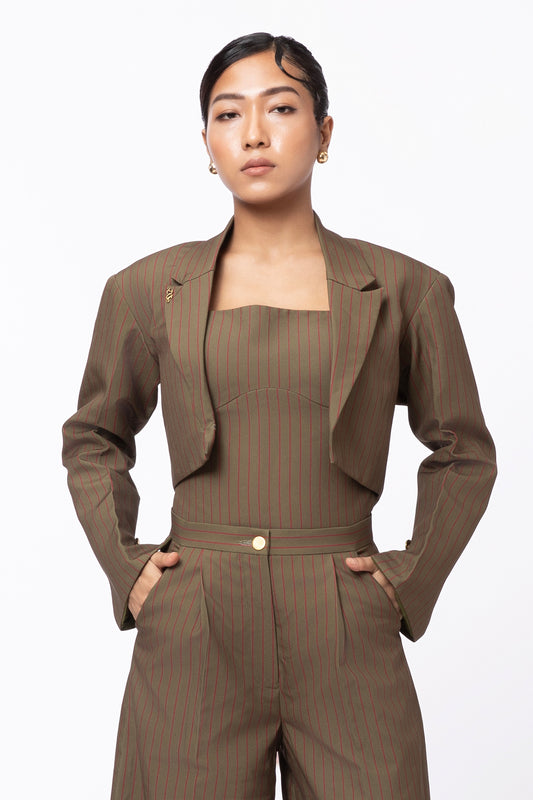 Still Stripe Crop Blazer - Olive